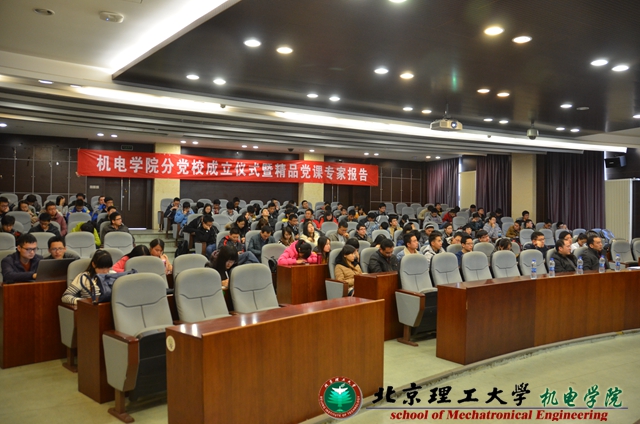 2013年12月5日,北理工機電學院分黨校成立儀式暨精品黨課專家報告會在研究生樓101舉行。校黨委組織部部長張笈、機電學院黨委副書記、副院長楊瑞偉、副書記陳軍、分團委書記章濤、輔導員王雪慧和培訓班全體學員參加了本次活動。會議由機電學院黨委副書記、副院長楊瑞偉主持。