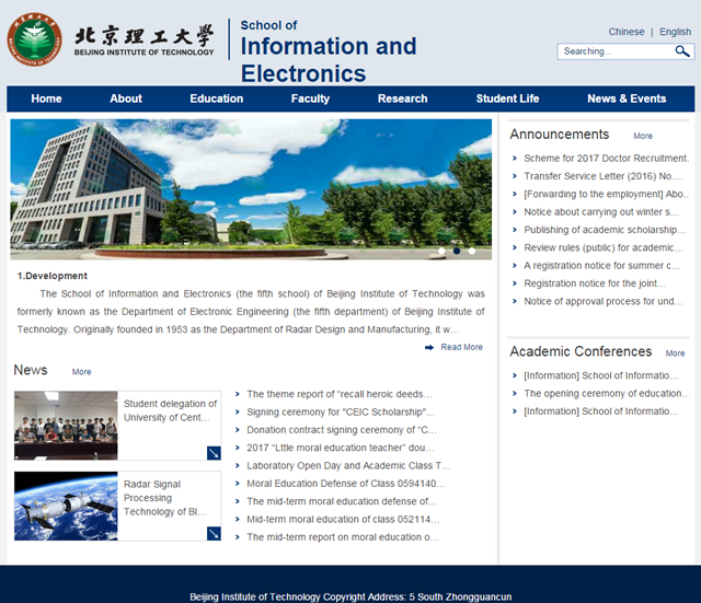 5月19日,信息與電子學院英文網站正式完成建設并上線運行,這是我校第6個正式上線運行的二級學院英文網站。2014年起,面向“雙一流”建...