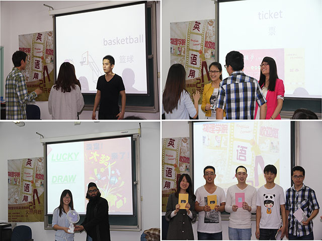 2014年4月25日晚7點,物理學院英語角第二季在中教610火熱開啟。本次“英語角”由物理學院主辦,物理學院研究生會承辦。活動不僅吸引了其他學院的眾多學生參加,還吸引了來自巴基斯坦的留學生前來參加。參與的同學不僅練習了口語還了解了異域文化,開闊了眼界。