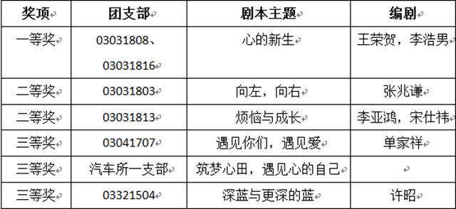 10月26日至11月11日,為了給廣大熱愛文學創作及戲劇表演的學生提供一個展示才華的平臺,從不同的視角,記錄鮮活、生動的校園生活,以藝術的形式再現大學生的心理成長歷程,學院開展了“筑夢心田?遇見心的自己”第二屆心理情景劇大賽劇本征集活動。本次活動共收到了來自19個支部的20個劇本,經過學院評審,最終評出了一、二、三等獎。