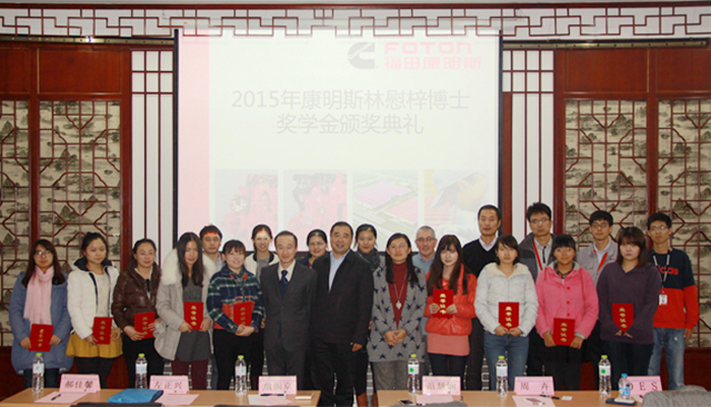2015年11月10日,北京理工大學機械與車輛學院2015年度康明斯林慰梓博士獎學金頒獎儀式在中關村校區車輛重點實驗樓報告廳舉行。出席本次頒獎儀式的有北京福田康明斯發動機有限公司黨委書記詹振京、北京福田康明斯發動機有限公司人力資源部總監范慧嫻、北京福田康明斯發動機工廠廠長 DES 、ISG 發動機技術總工周卉、機械與車輛學院黨委書記左正興、獎學金評審委員會主任郝佳馨以及北京福田康明斯發動機有限公司的其他嘉賓。