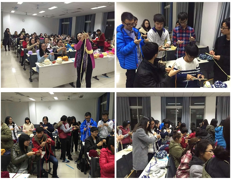 為使同學(xué)們迅速掌握編織技巧,失獨(dú)小組于11月12日、17日分別在良鄉(xiāng)校區(qū)理教406教室和心理與社會(huì)工作實(shí)驗(yàn)室舉辦編織培訓(xùn)活動(dòng)。賈曉明老師親自帶領(lǐng)小組成員,手把手地教授圍巾編織技巧。培訓(xùn)現(xiàn)場(chǎng)氣氛熱烈,同學(xué)間相互交流、相互學(xué)習(xí)、相互促進(jìn)。短短2個(gè)小時(shí)內(nèi),現(xiàn)場(chǎng)80余位學(xué)生便從剛領(lǐng)到毛線時(shí)的茫然與疑惑,達(dá)到了熟練掌握了起針、平針、情人扣等基本編織手法的程度。高效率的培訓(xùn)設(shè)計(jì)與有條不紊的現(xiàn)場(chǎng)組織推動(dòng)了活動(dòng)的順利開(kāi)展。