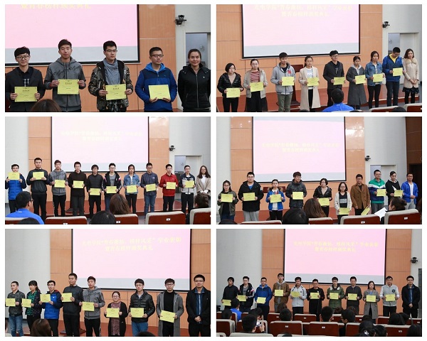 為營造“比、學、趕、幫、超”的優良學風,鼓勵同學們樹立遠大理想,勤奮學習,經學院批準授予左宏志等71名同學“成績優異獎”,授予吳與倫等31名同學“單科優異獎”,授予陳心愉等33名同學 “飛躍進步獎”;授予博雅園329等16個寢室“優良學風寢室”;授予04011507等3個班級“班級優良學風班”,授予04011505等5個班級“先進班集體”,與會老師們為獲獎集體和個人代表頒獎。