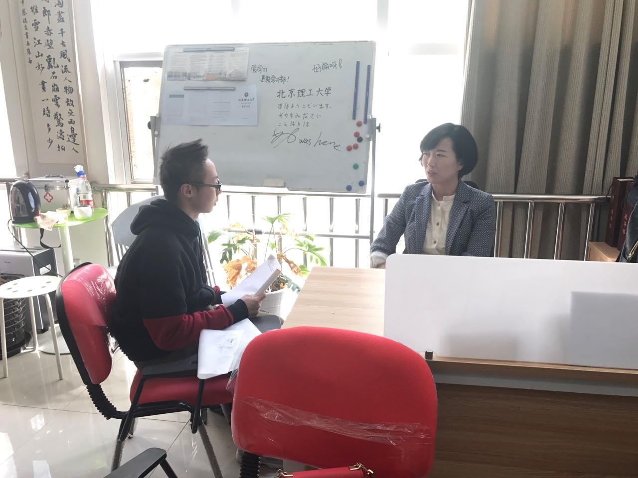 下午2點(diǎn)30分,李冬妮來到良鄉(xiāng)校區(qū)學(xué)生工作辦公室與輔導(dǎo)員、大學(xué)生創(chuàng)新訓(xùn)練計(jì)劃項(xiàng)目成員進(jìn)行了一對(duì)一談話。李冬妮詳細(xì)了解了同學(xué)們目前在項(xiàng)目中的進(jìn)展與困惑,肯定了同學(xué)們的進(jìn)步,并對(duì)項(xiàng)目進(jìn)一步深入開展進(jìn)行了詳細(xì)的指導(dǎo)。