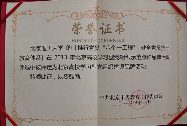 基礎(chǔ)教育學(xué)院黨委經(jīng)過多年的工作時間,形成了特色黨建工作的 “八個一”工程,即每學(xué)期“精讀一本經(jīng)典著作”、“撰寫一篇讀書心得”、“參加一次黨課學(xué)習(xí)”、“進(jìn)行一次主題討論”、“參與一個學(xué)術(shù)小組”、“參加一次實踐活動”、“撰寫一篇實踐報告”、“幫扶一位落后同學(xué)”。這些貼近大學(xué)生群體成長發(fā)展實際的舉措,將理論學(xué)習(xí)和實踐活動相結(jié)合,從理論學(xué)習(xí)、服務(wù)意識、先鋒作用、實踐能力、學(xué)術(shù)水平等多方面推動學(xué)生黨員素質(zhì)綜合提升,取得實效,并獲得“北京高校學(xué)習(xí)型黨組織建設(shè)品牌活動”榮譽。